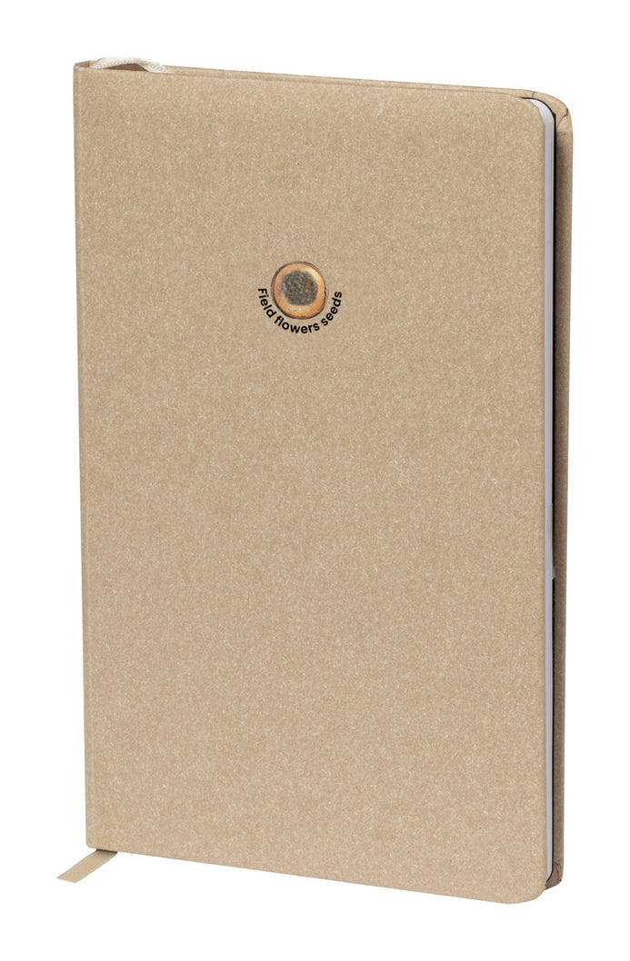 | Descriere | Recycled cardboard covered notebook with bookmark and 80 lined sheets in recycled paper. Including plantable wildflower seeds. |