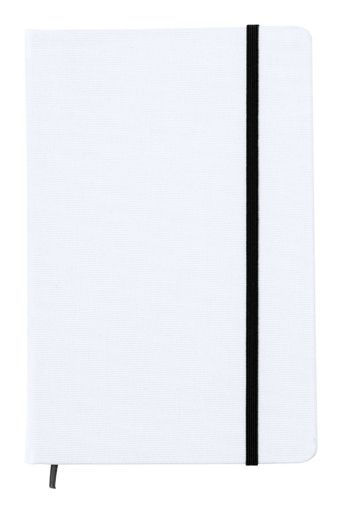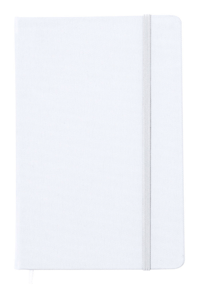 | Descriere | 600D RPET polyester covered notebook with 100 blank sheets, coloured rubber band and bookmark. A5 size. Ideal for sublimation printing |