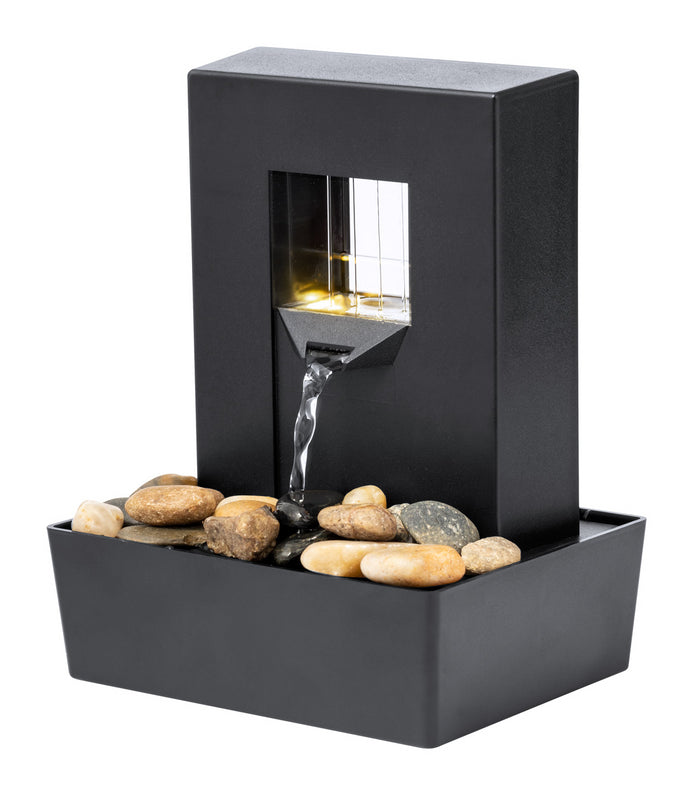 Fântână decorativă cu lumini LED și pietre. Funcționează cu 3 baterii AA, livrată fără baterie.