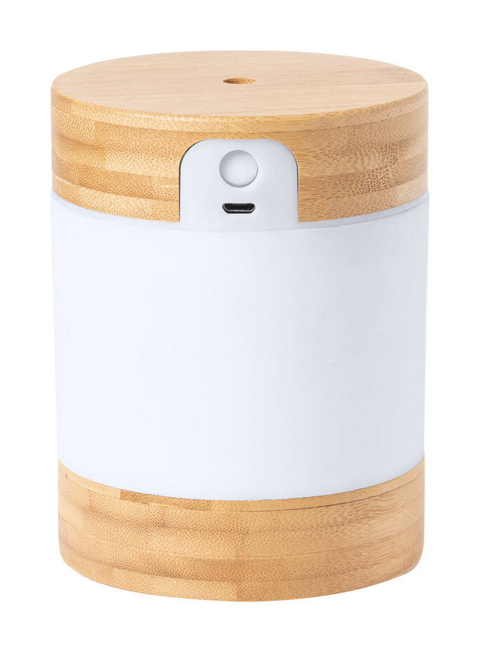 Umidificator de birou din bambus cu lumină LED. Inclusiv cablu de alimentare USB. Capacitate rezervor: 250 ml. În cutie de hârtie kraft.