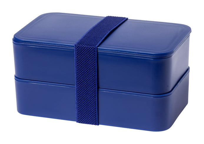 Cutie pentru prânz, din plastic PP, cu set de tacâmuri (furculiță, lingură și cuțit) și curea elastică. Cu 2 compartimente cu capacitate de 700 ml fiecare.