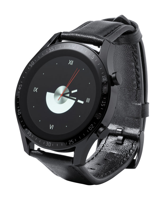 Ceas inteligent, bluetooth, multifuncțional, în carcasă metalică, cu ecran tactil LCD de 1,32 inchi, baterie reîncărcabilă de 300 mAh și curea din piele. Are mai multe funcții inteligente de monitorizare a sănătății, precum monitorizarea ritmului cardiac, tensiunii arteriale și oxigenului, apeluri bluetooth, prognoza meteo, și monitor de somn pe lângă multe altele.Poate fi conectat la smartphone-uri cu o aplicație gratuită disponibilă pentru iOS și Android.IP67 rezistent la apă.Inclusiv cablu de încărcare USB.Produs marca Antonio Miro.