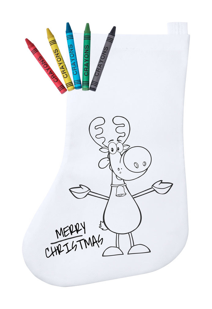 Șosetă decorativă de colorat, din material nețesut (80 g/m²), cu 5 creioane.