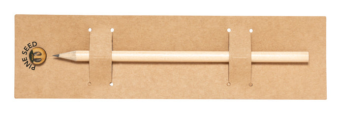 Wooden lead pencil in recycled cardboard sleeve. Including plantable pine seeds.
