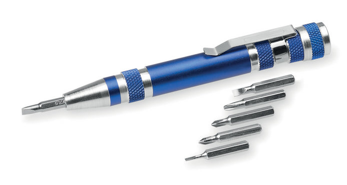 Șurubelniță din aluminiu cu 6 capete interschimbabile.