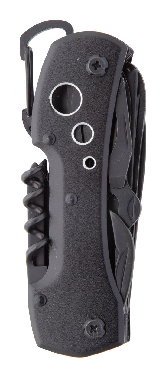 | Descriere | Briceag din oțel inoxidabil, complet negru, cu 13 funcții, carabină și mâner din aluminiu. |