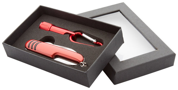 | Descriere | Briceag cu 7 funcţiuni, cu mini lampă din aluminiu, 1 LED, cu carabină, în cutie neagră de cadou. |