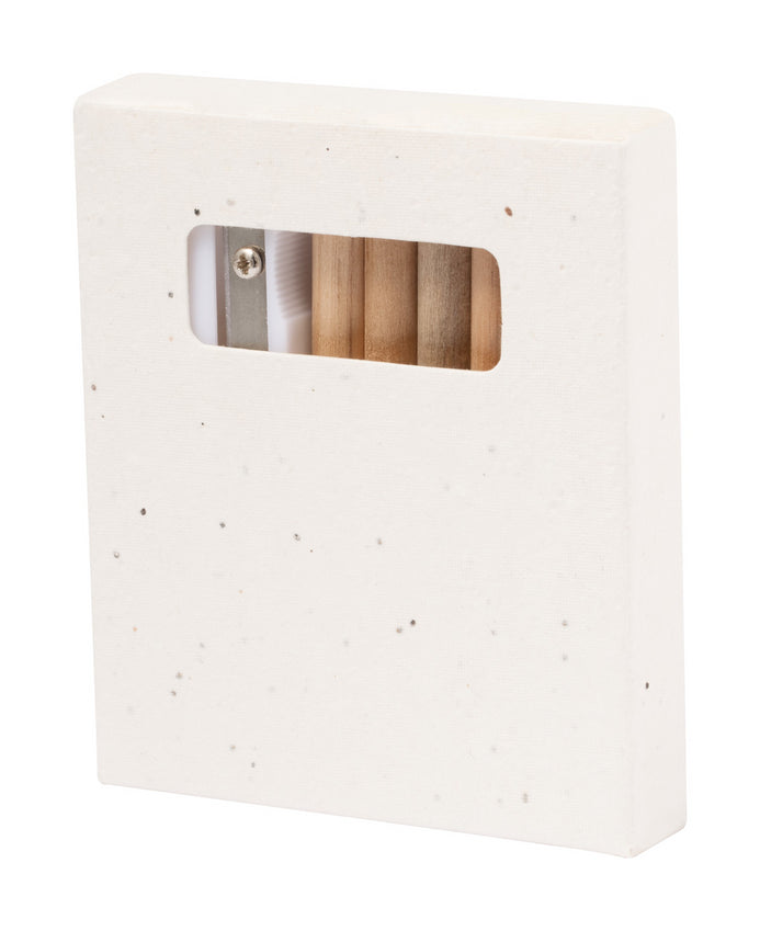 | Descriere | Colouring set with 8 pc wooden colouring pencils, sharpener and 20 sheets colouring notepad. The box contains petunia seeds in assorted colours with plantable cardboard. |