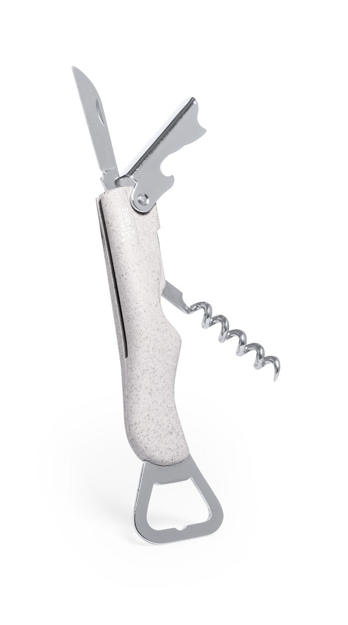 | Descriere | Tirbușon cu deschizător de sticle și tăietor de capsule. În plastic din fibră de bambus ecologică și oțel inoxidabil. |