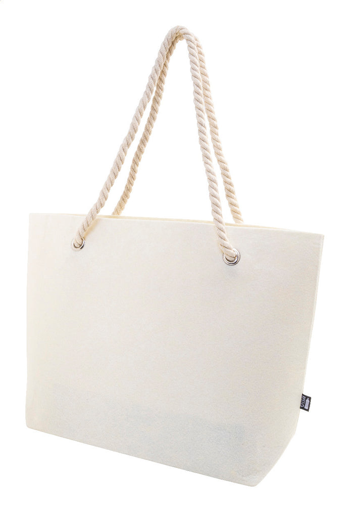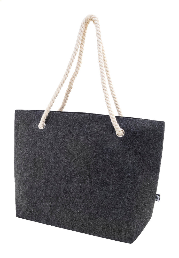 | Descriere | Geantă de plajă sau de cumpărături, din fetru RPET, cu mânere din șnur de bumbac și clin la bază. Cu etichetă distinctivă din RPET. |
