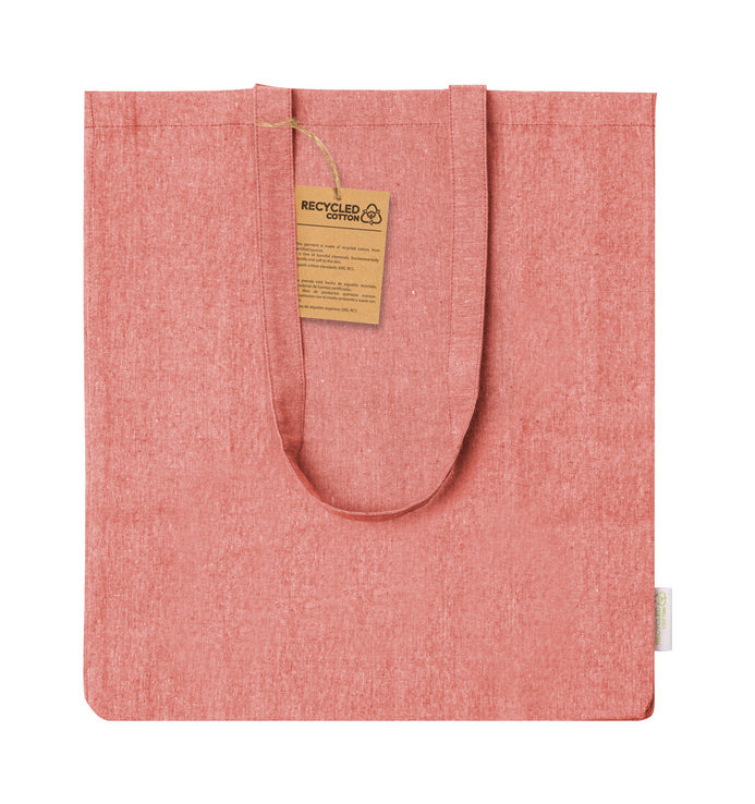 | Descriere | Sacoșă de cumpărături, din bumbac reciclat, cu burduf, mânere lungi și etichetă distinctivă din bumbac reciclat. 100% bumbac reciclat, 140 g/m². |