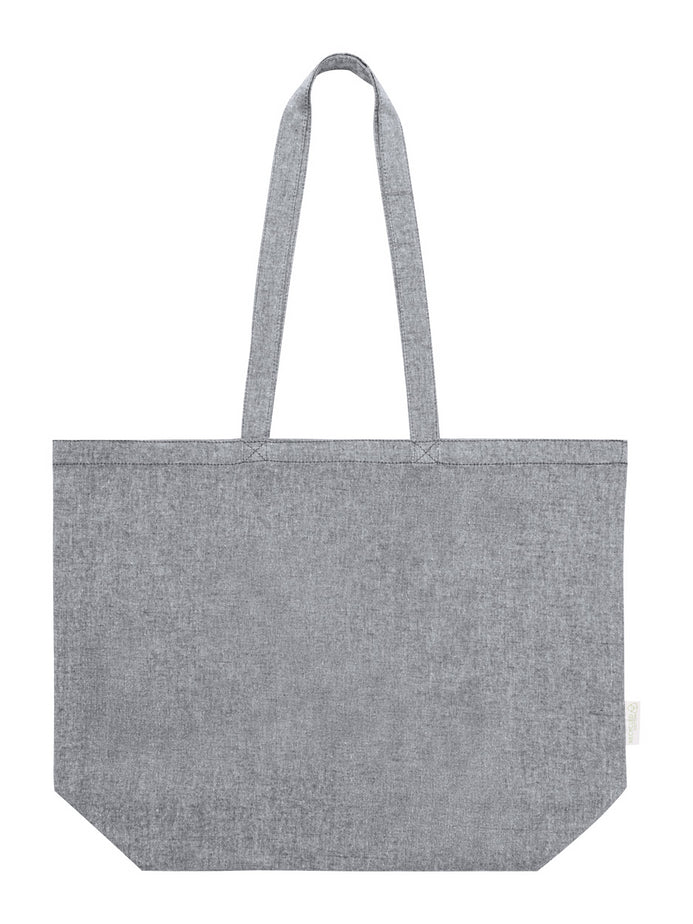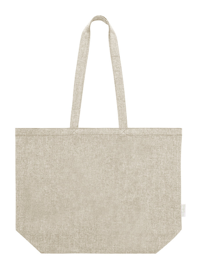 | Descriere | Sacoşăde cumpărături din bumbac reciclat, cu mânere lungi, burduf și etichetă distinctivă din bumbac reciclat. 100% bumbac reciclat, 140 g/m². |