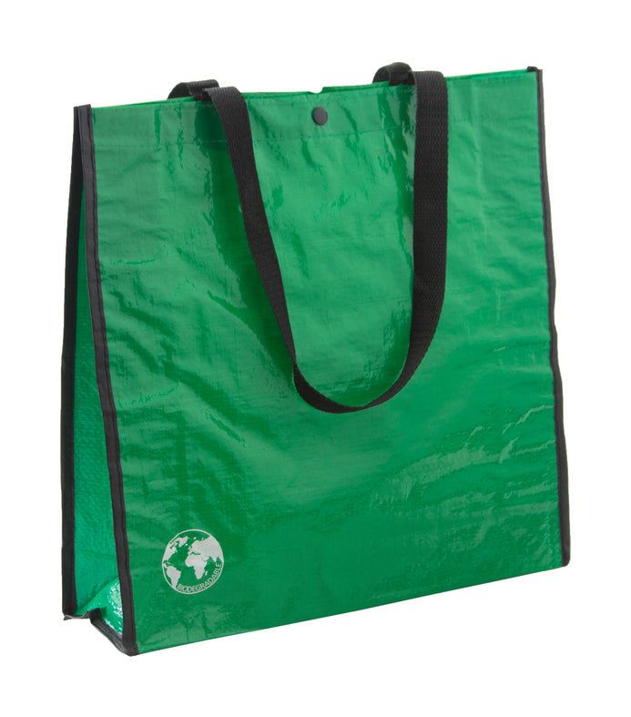 Geantă de cumpărături, biodegradabilă, cu închidere prin capsă. PP țesut 120 g/m².
