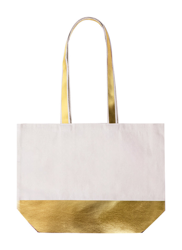 | Descriere | Cotton shopping bag with gusset and PU leather base and handle with metallic finish. |