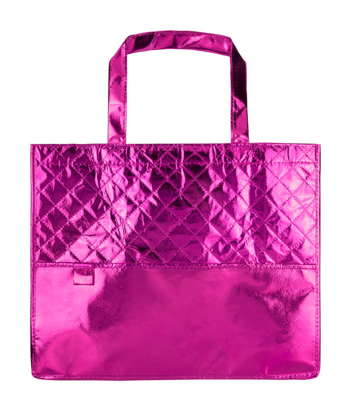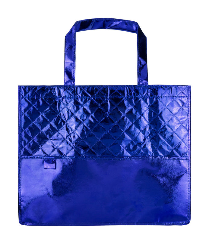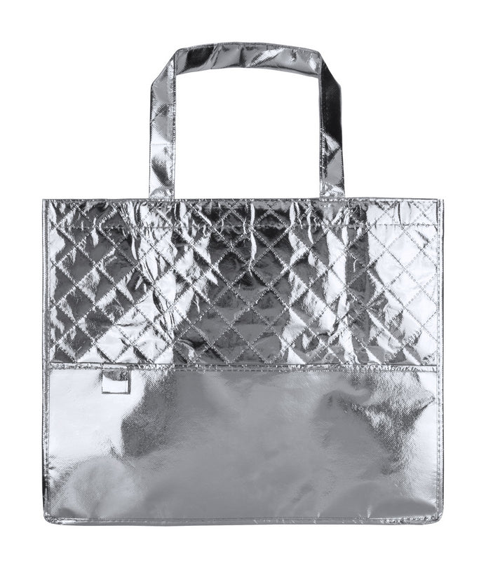 Descriere Geantă pentru cumpărături din material nețesut, lucios, laminat. Cu buzunar frontal și suport pentru pix. 110 g/m².