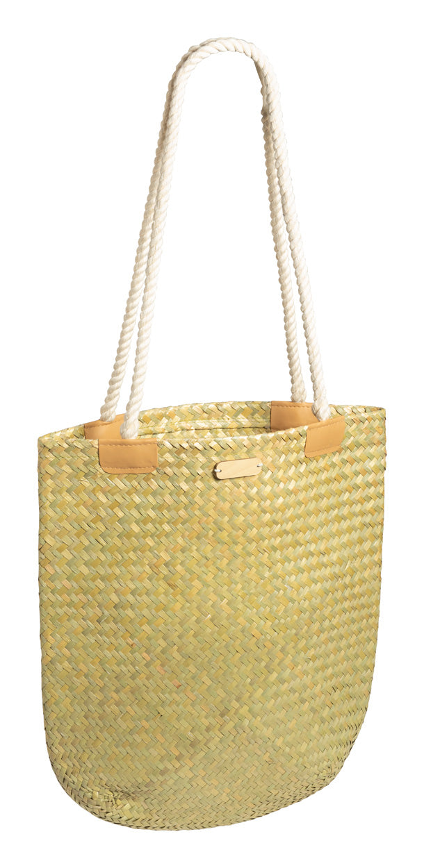 | Descriere | Geantă de plajă din paie, cu placă decorativă din lemn și mânere lungi din bumbac împletit, întărite în piele PU. |