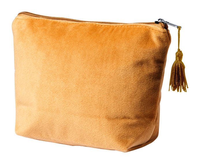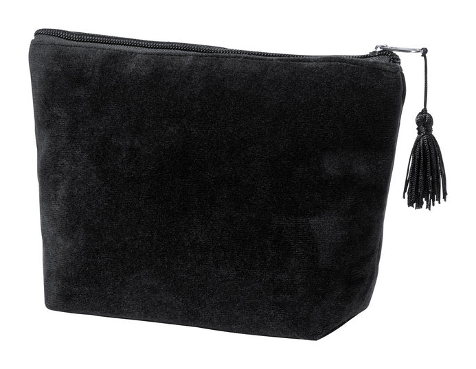 | Descriere | Geantă pentru cosmetice, cu fermoar, din catifea reiat, cu ciucuri. |