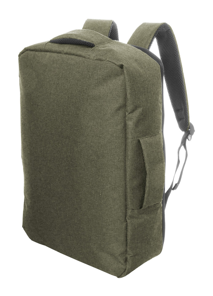 Rucsac RPET,cu dublă funcție și geantă pentru documente cu compartiment cu fermoar și compartiment căptușit pentru laptop (15"). Cu curea pentru cărucior, spate și curele de umăr căptușite. Poliester 300D RPET, cu etichetă distinctă RPET.