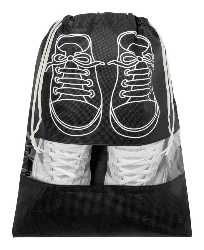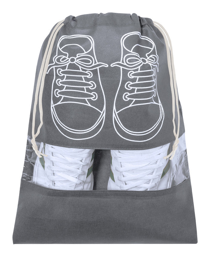 Geantă pentru pantofi, nețesută, cu șnur, cu fereastră transparentă.