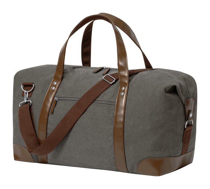 Geantă sport, din pânză, cu compartiment principal cu fermoar și buzunar frontal. Cu curea de umăr reglabilă, detalii din piele PU și mânere.