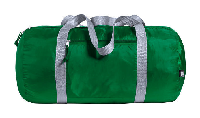 Geantă sport RPET cu compartiment cu fermoar si buzunar frontal. Poliester 290T RPET, cu etichetă distinctă RPET.