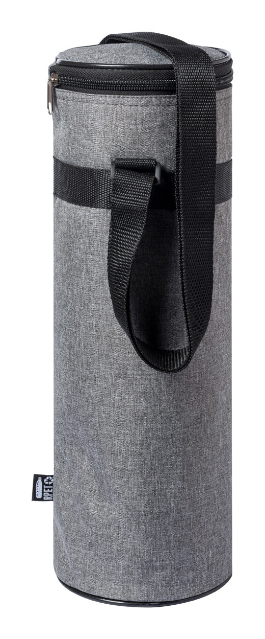 Geantă frigorifică RPET, ideală pentru o sticlă de 1,5 l. Cu închidere cu fermoar, căptușeală din aluminiu și curea de umăr reglabilă. Cu etichetă distinctivă RPET. Poliester 300D RPET.