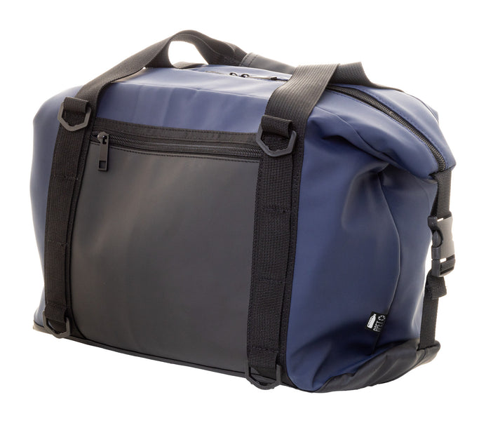 Geantă frigorifică pliabilă, cu fermoar, din piele moale PU reciclată, cu căptușeală din aluminiu și buzunar frontal cu fermoar. Cu catarame laterale, mânere și curea de umăr reglabilă. Geanta poate fi pliată pentru o depozitare ușoară sau fixată în formă cu cataramele laterale în timpul utilizării.