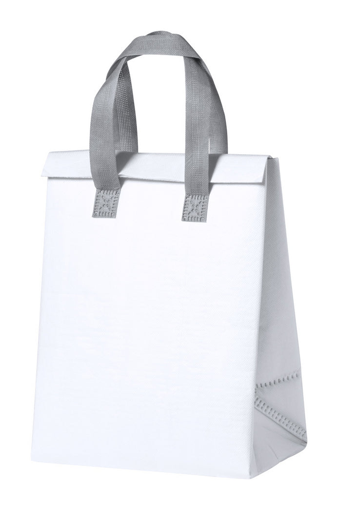 | Descriere | Geantă frigorifică din material nețesut laminat, cu mânere, închidere cu velcro și căptușeală din aluminiu. |