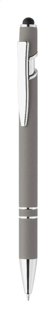 | Descriere | Pix cu bilă și capăt pentru ecran tactil, din aluminiu reciclat, cu corp cauciucat și detalii cromate. Cu mină albastră. |