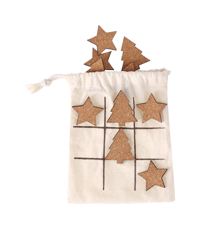 Joc X și 0 din plută naturală cu 10 jetoane, în husă de transport cu șnur de bumbac.