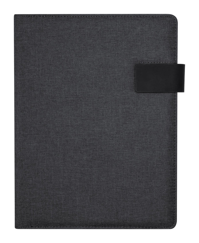 | Descriere | 600D RPET polyester document folder with 20 lined sheets notepad and multiple inside organizer pockets. |