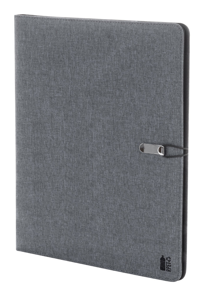 | Descriere | Dosar pentru documente, din poliester 300D RPET de dimensiune A4, cu blocnotes cu 25 de foi dictando și mai multe buzunare interioare pentru organizare. |