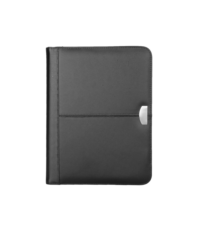 | Descriere | Mapă neagră din piele cu plăcuță metalică pe copertă, carnețel dictando, suport pentru acte, cărți de vizită și intstrumente de scris. |