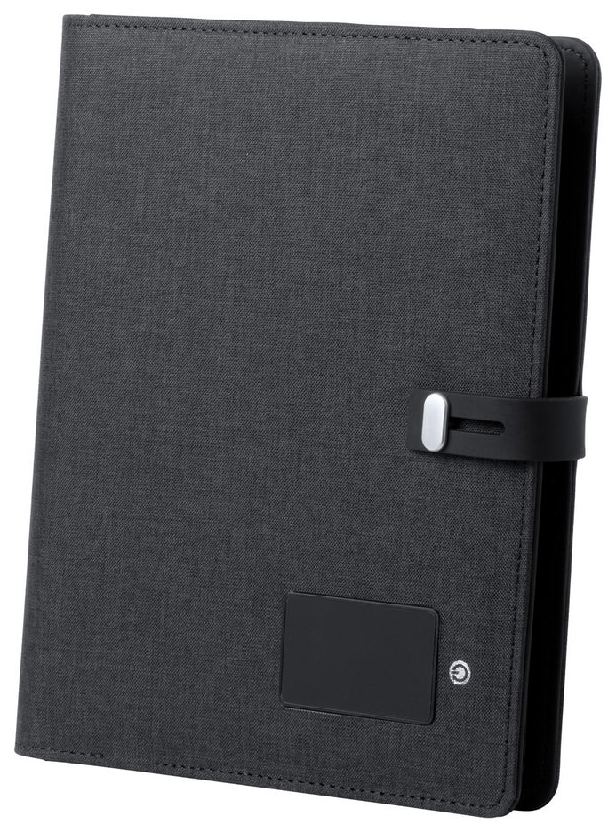 | Descriere | Mapă pentru documente A5, din poliester 300D, cu power bank de 4000 mAh, încărcător wireless încorporat, blocnotes cu 64 file dictando. Copertă cu LED pentru gravura iluminată. Cu cablu încărcător USB. |