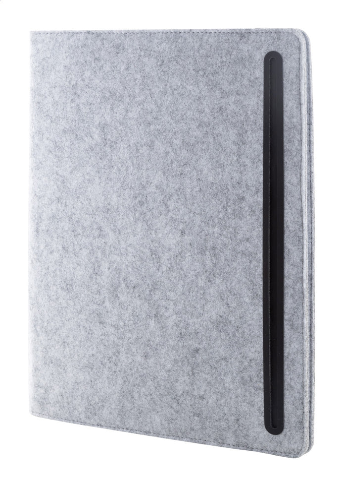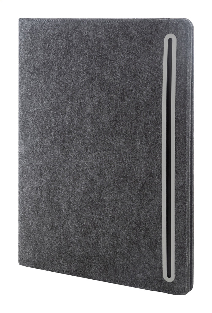 | Descriere | Dosar pentru documente de dimensiune A5, din fetru RPET, cu buzunare de organizare frontale și multiple interioare. Cu blocnotes cu 20 de foi dictando din hârtie reciclată. |