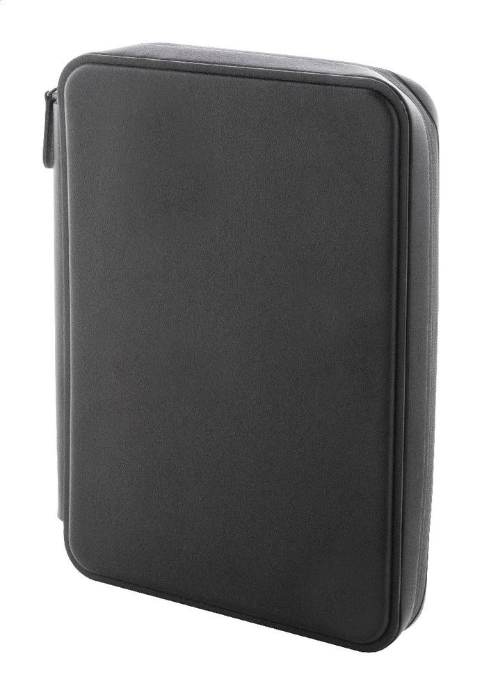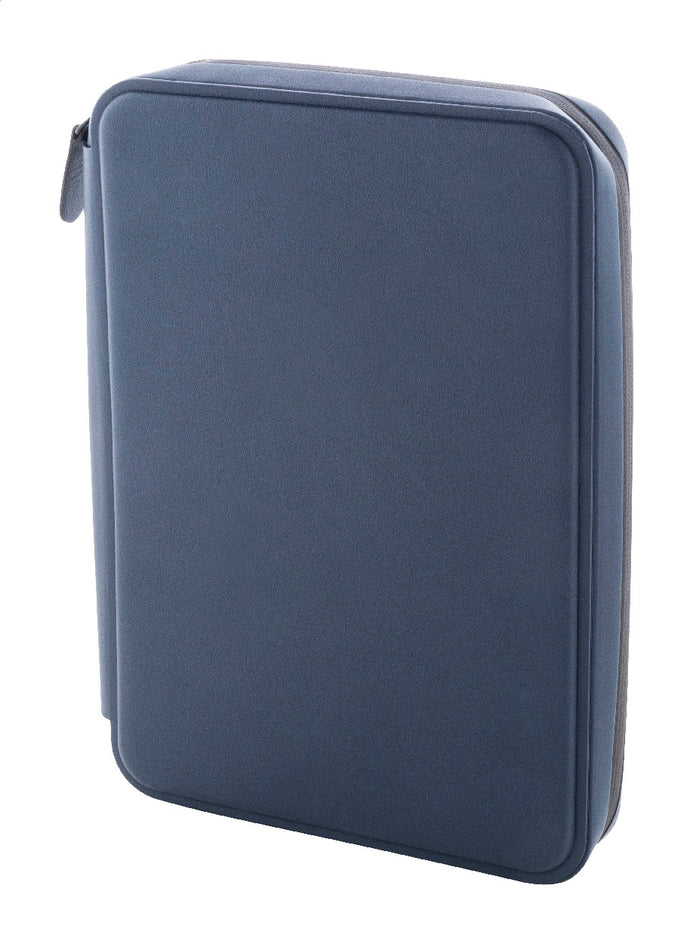 | Descriere | Mapă documente, de lux, cu fermoar pentru documente, din piele PU reciclată, cu blocnotes cu 64 de foi dictando din hârtie reciclată. Prezintă mai multe buzunare interioare pentru cărți de vizită și documente. Dimensiune A5. |