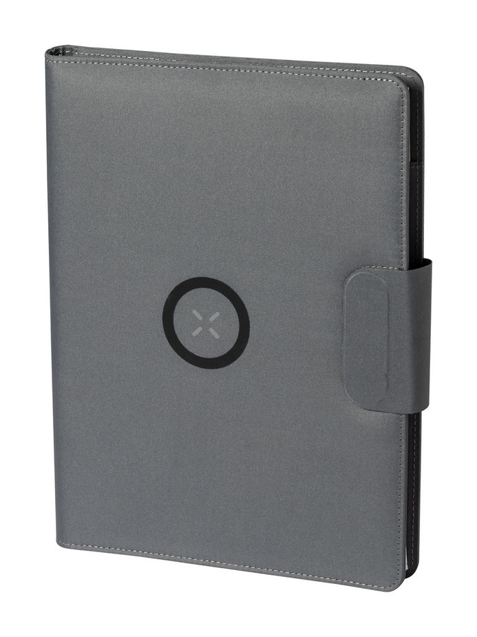 | Descriere | Mapă pentru documente, din poliester 300D RPET, dimensiune A4, cu încărcător rapid magnetic fără fir (10W), power bank de 5000 mAh cu port de încărcare USB, suport mobil pliabil și carnet cu 20 de foi dictando. Include inel metalic autoadeziv pentru a utiliza funcția magnetică pe orice dispozitiv încărcat fără fir. Inclusiv cablu de încărcare USB. |