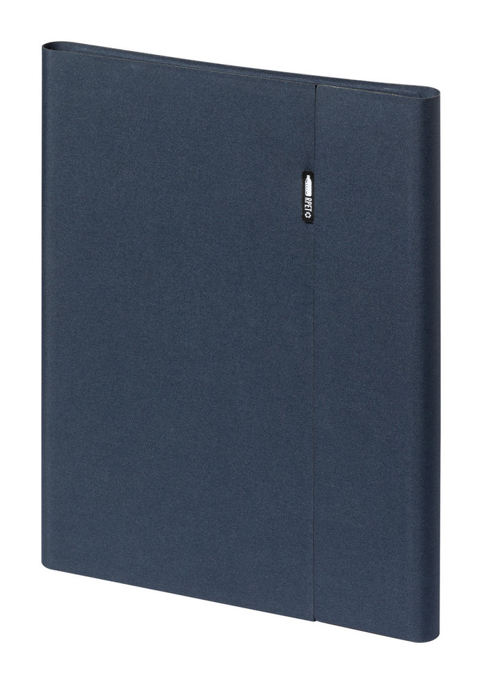 | Descriere | Mapă pentru documente, din poliester 600D RPET, format A4, cu închidere magnetică, suport mobil pliabil și carnet cu 20 de foi dictando. Cu etichetă distinctivă RPET. |
