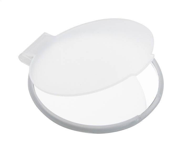 Oglindă de buzunar, rotundă, în carcasă PS reciclată, translucidă.