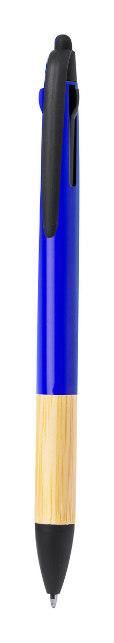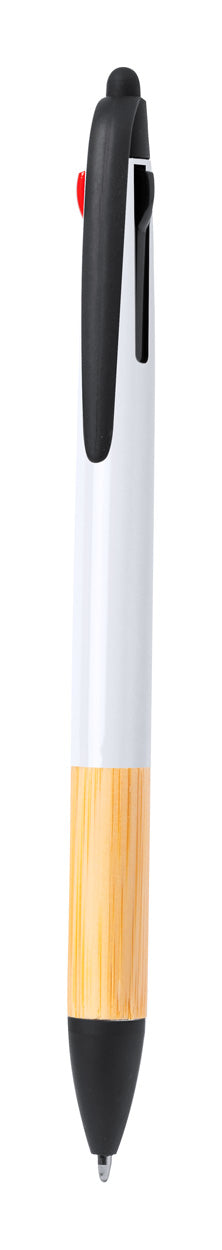 | Descriere | Pix din plastic ABS, cu mâner din bambus, părți negre și 3 buc mină (albastru, roșu, negru). |