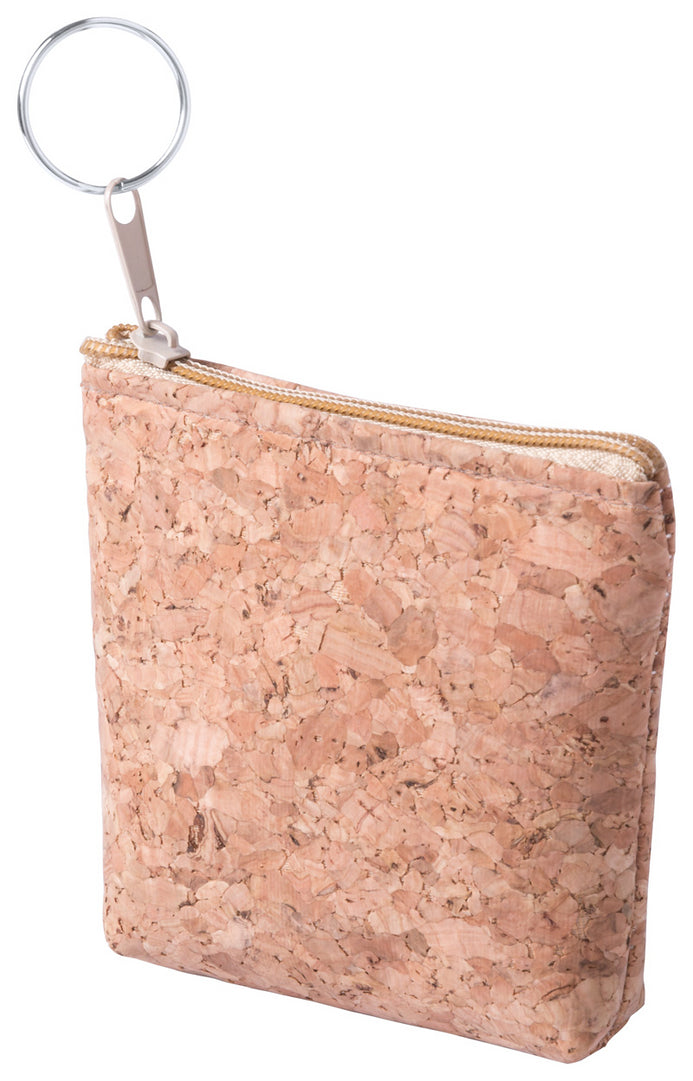 Portmoneu din plută, cu fermoar, cu căptușeală interioară și inel metalic pentru chei.