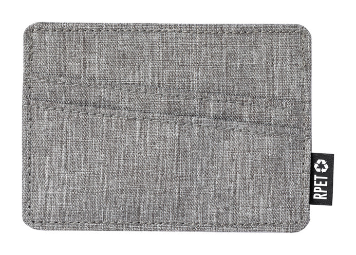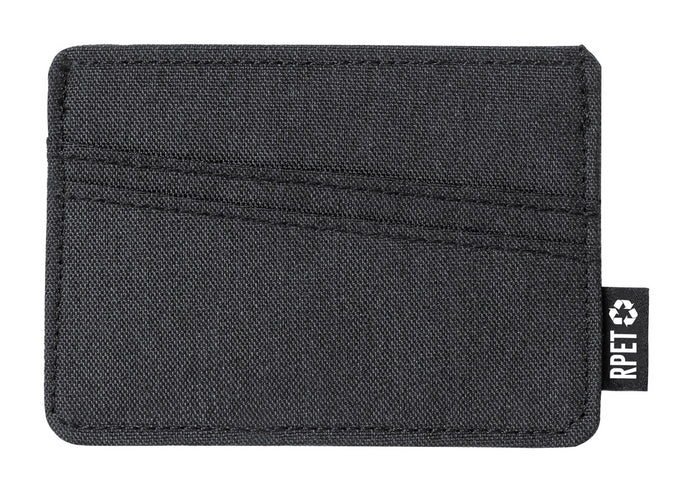 Suport pentru carduri de credit, din poliester RPET, cu 3 sloturi pentru carduri. Cu etichetă distinctivă RPET.