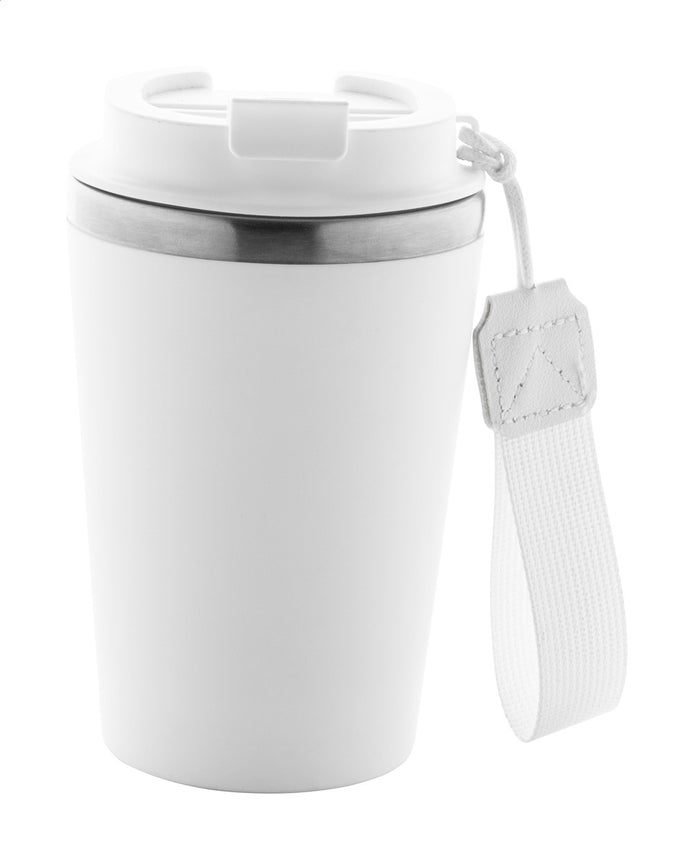 | Descriere | Pahar termoizolant, din oțel inoxidabil reciclat, cu perete dublu, cu exterior din plastic PP și capac pentru băutură. Cu curea de transport RPET. 350 ml. |