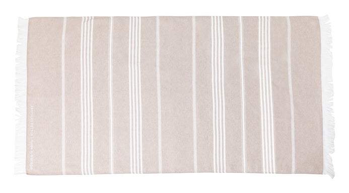 | Descriere | Prosop de plajă pareo, bicolor. Amestec de 60% bumbac reciclat și 40% poliester, 250 g/m². |