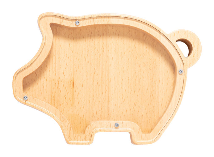 Pușculiță din lemn, cu suprafață transparentă.