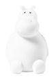 Puşculiță în formă de hipopotam, din plastic PVC, cu dop detașabil pentru deschidere.