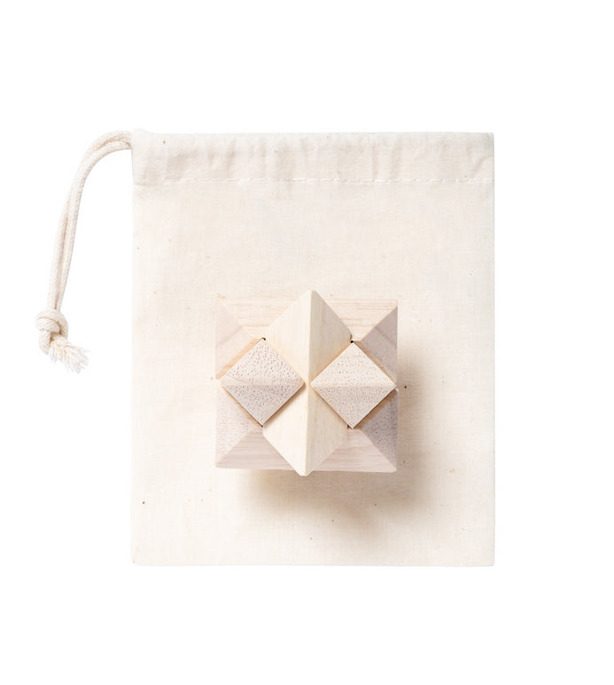 | Descriere | Puzzle magic din lemn în husă din bumbac cu închidere cu șnur. |