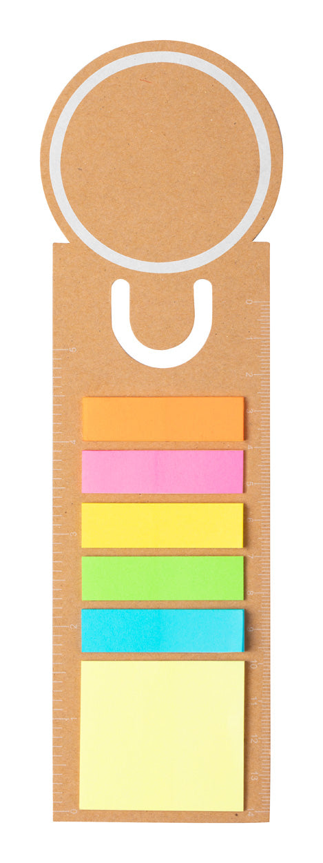 | Descriere | Semn de carte și riglă din hârtie reciclată cu 15 notițe adezive medii și 75 notițe adezive mici. |