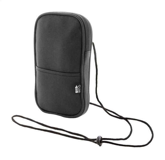 Geantă pentru telefon mobil, crossbody, impermeabilă din RPET, cu compartiment principal cu fermoar, buzunar frontal și șnur reglabil. Poliester RPET 600D acoperit cu PU, cu etichetă distinctivă RPET.