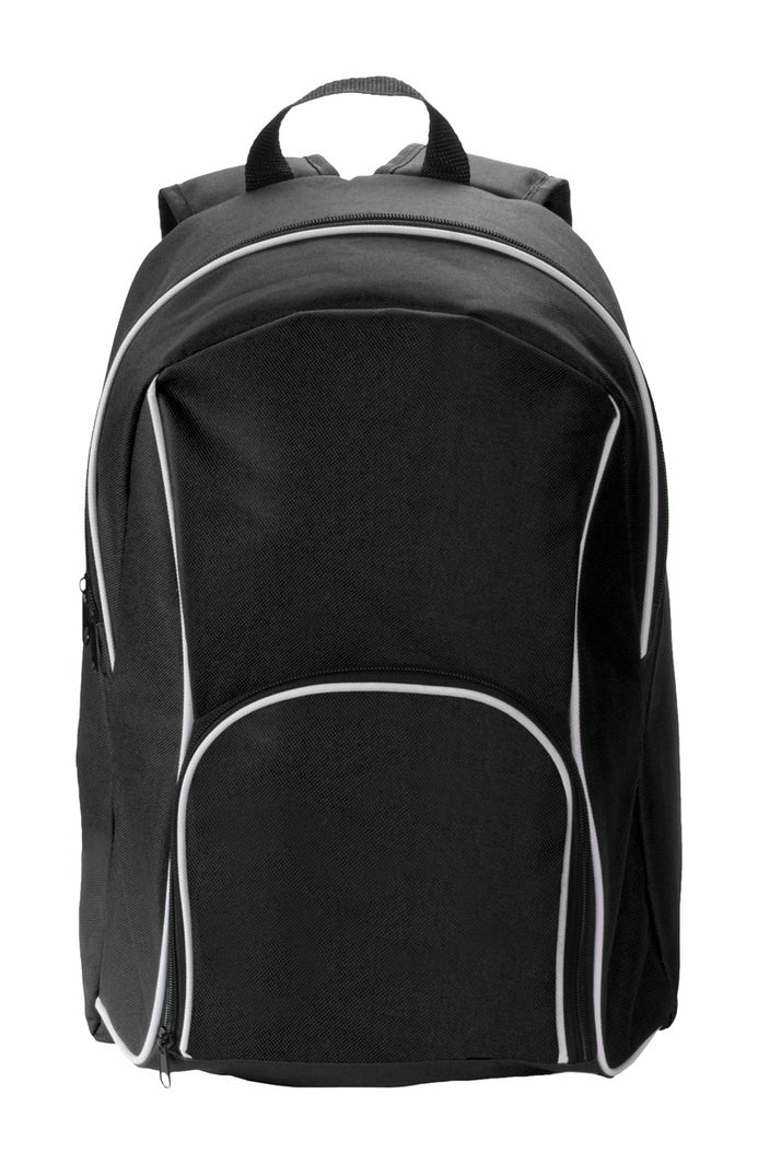 Rucsac cu buzunare cu fermoar, spate și bretele căptușite. Material: poliester 600D.